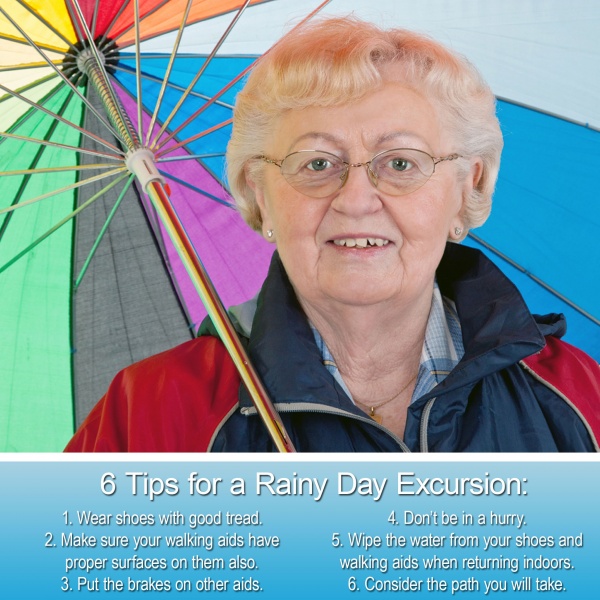 Wet and slippery surfaces caused by the rain such as sidewalks and grass can be a challenge for everyone but can prove to be an even bigger test for retirees or those who use mobility aids.